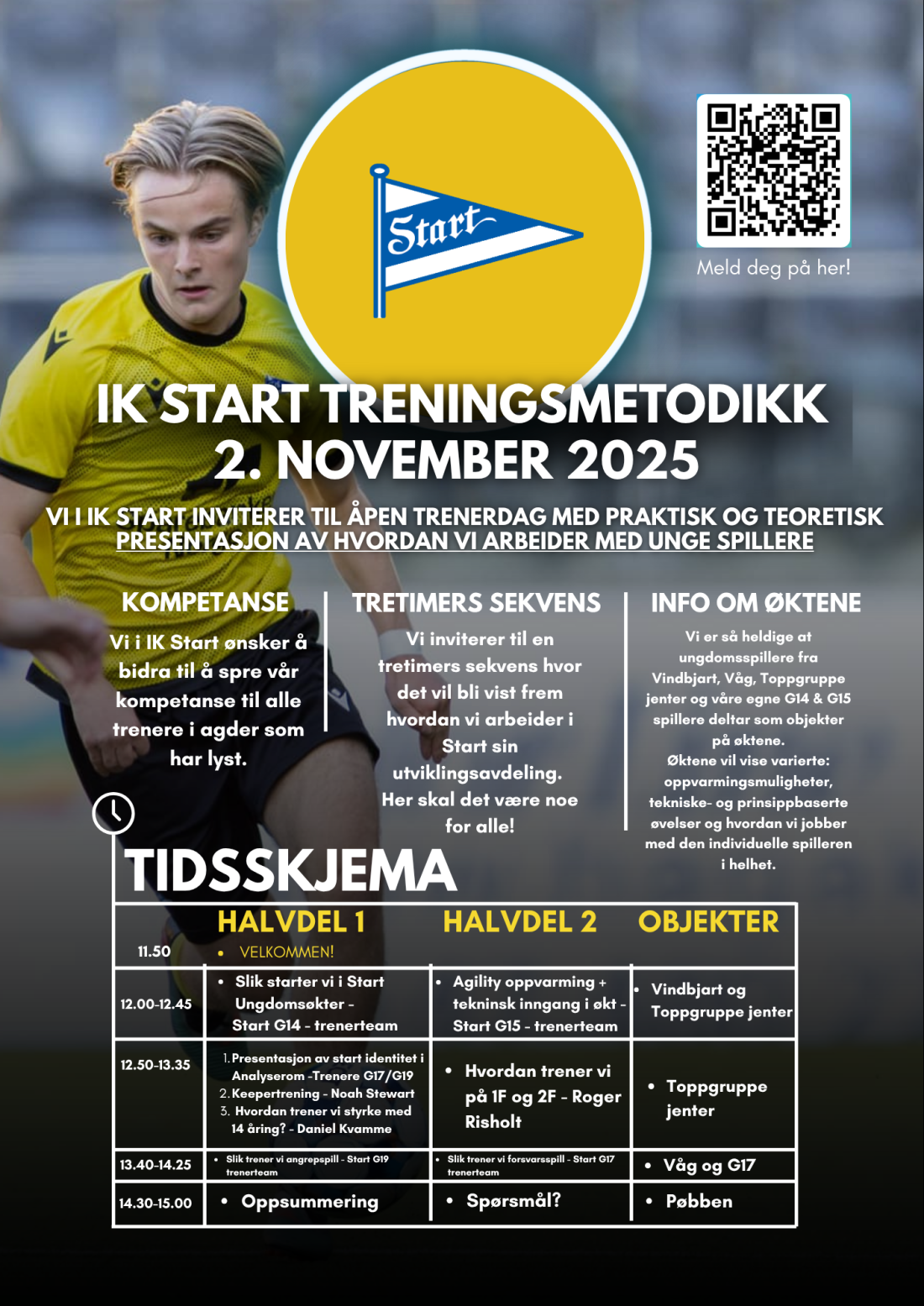 - Det var veldig gøy å invitere inn til åpen trenerdag på Sparebanken Norge Arena Kristiansand for å vise frem hvordan vi i klubben jobber. Det var fantastisk respons med over 100 påmeldte, som viser at det er et stort ønske blant trenerne i regionen om faglig påfyll, sier utviklingsleder i IK Start, Johan Gjønnes Nilsen: