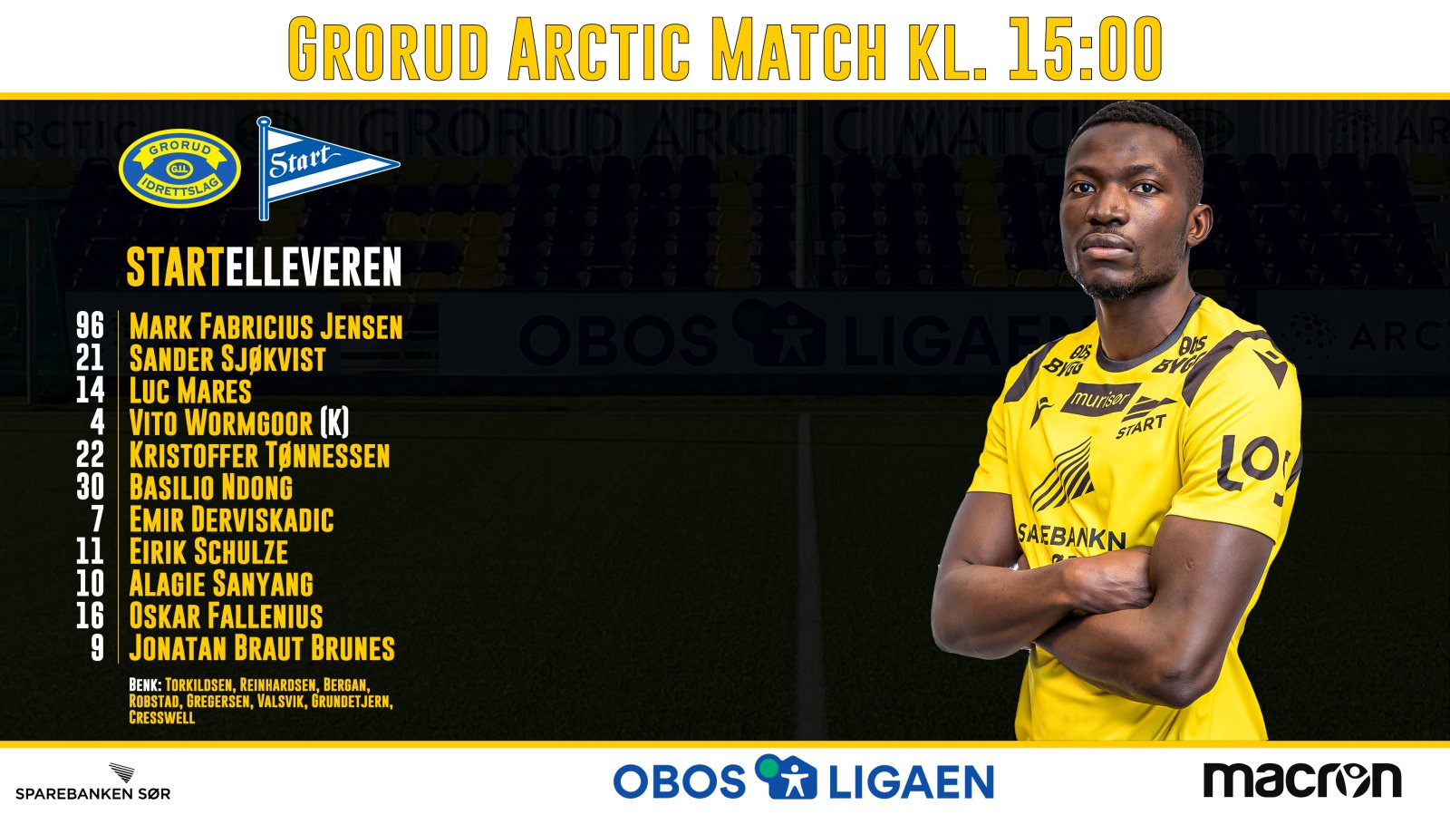 Både Alagie Sanyang og Basilio Ndong starter dagens kamp mot Grorud. Kaptein Vito Wormgoor er også tilbake på laget etter han mistet 3-2-seieren mot Skeid grunnet skade.