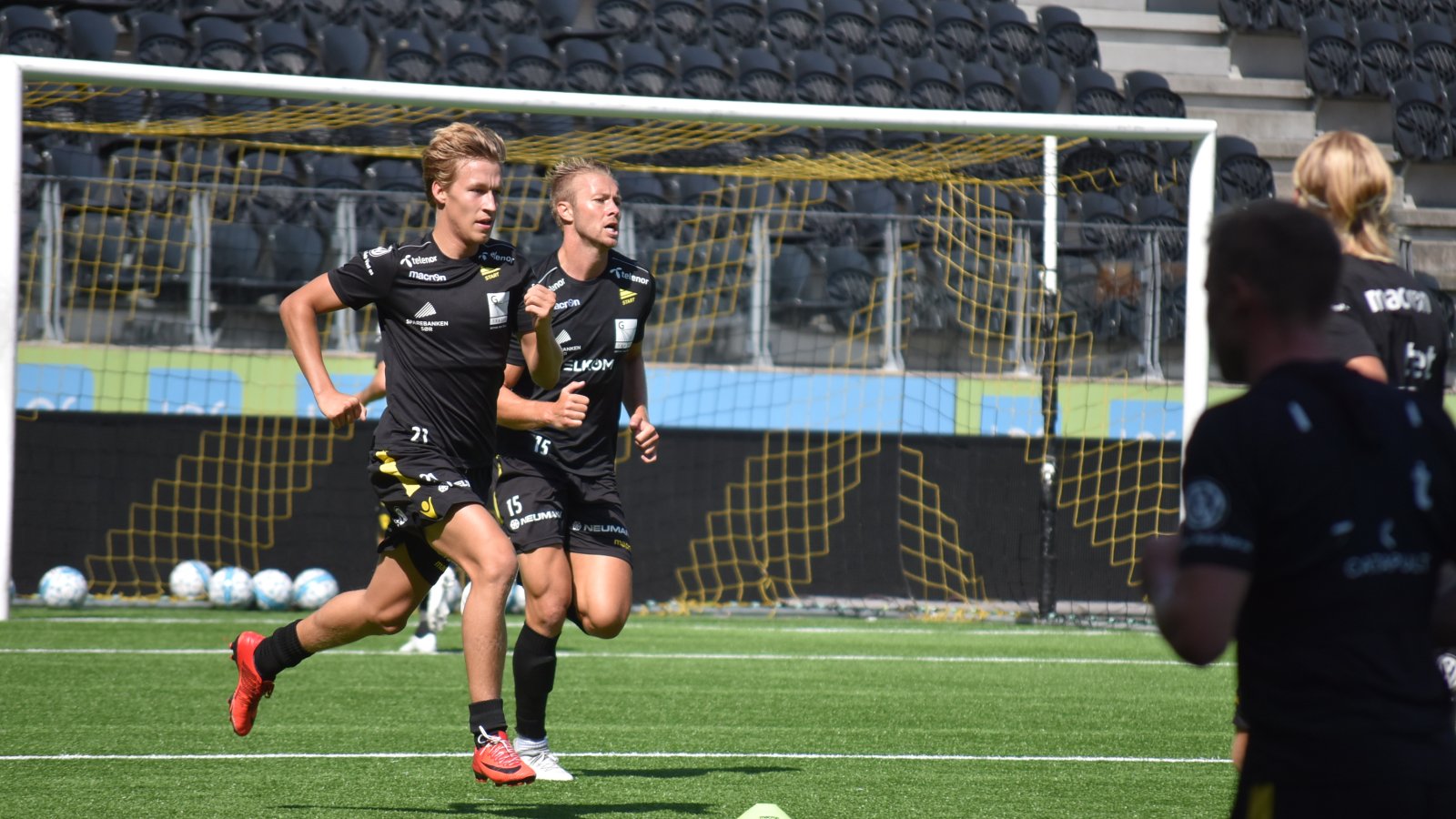 Aron Sigurdarson og Herolind Shala. Shala har kun hatt en liten håndfull treninger med laget, men lagkameratene gjør sitt beste for å integrere ham i lagets spillestil.