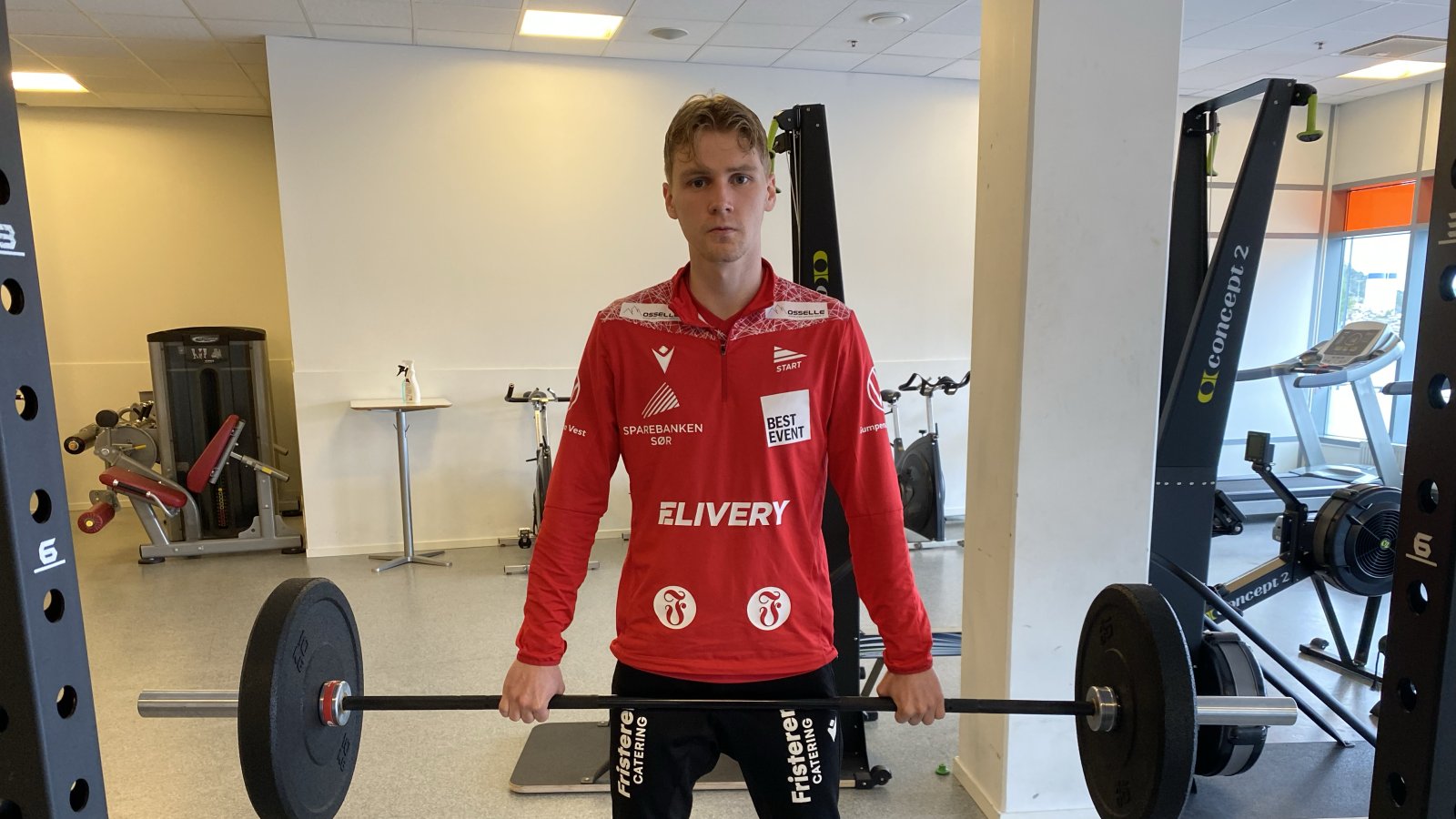 Start-keeper Sondre Solås har gått ned 10 kilo i vekt etter den alvorlige hodeskaden han pådro seg i 3. divisjons-oppgjøret mot Eik Tønsberg 7. mai. Nå har 20-åringen begynt å løfte vekter i treningsstudioet på Sparebanken Sør Arena. (Foto: Egil Olsen)