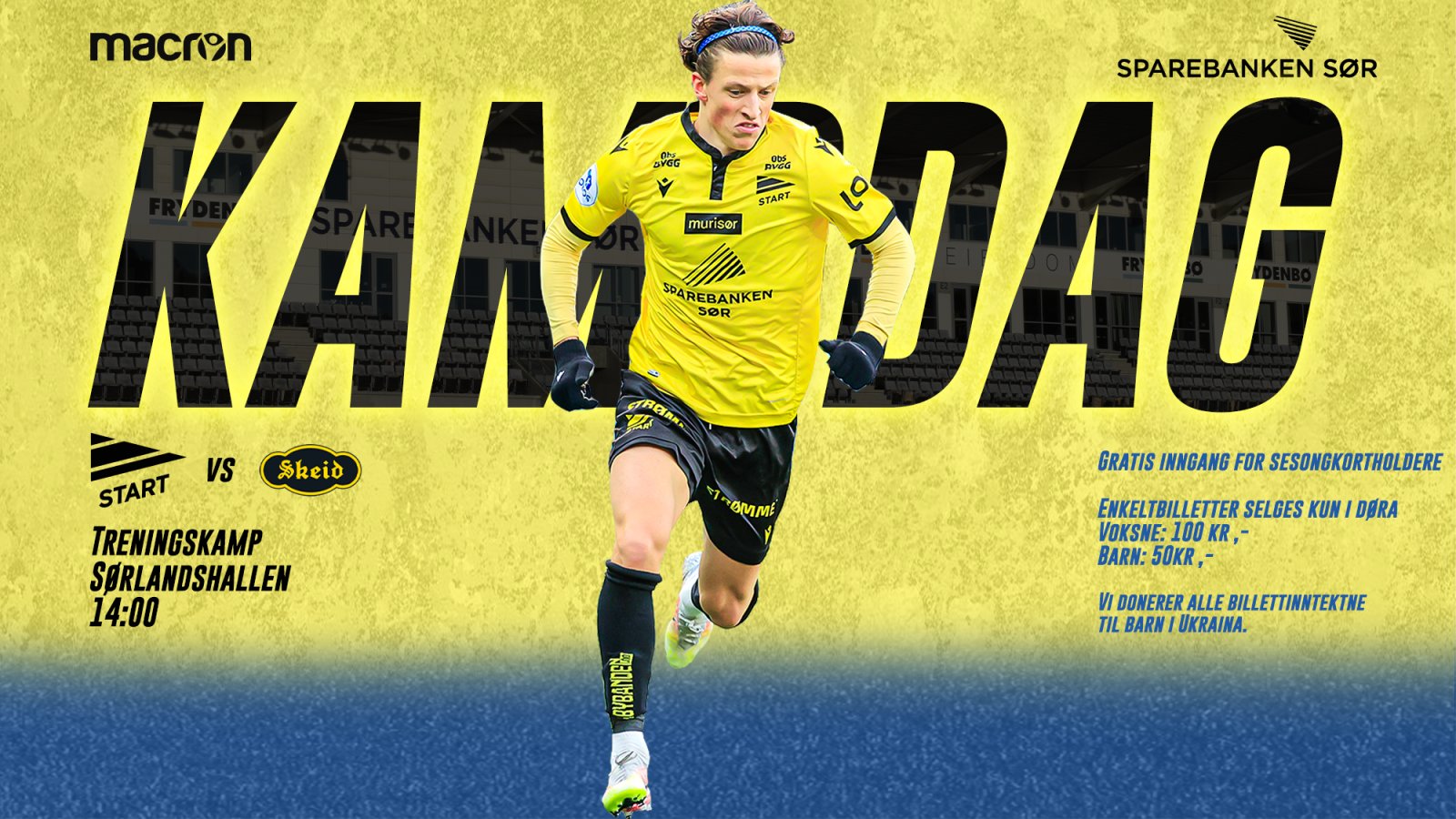Vi donerer alle billettinntekter til Redd Barna sitt arbeid for barn i Ukraina. Billetter til dagens kamp selges kun i døra.