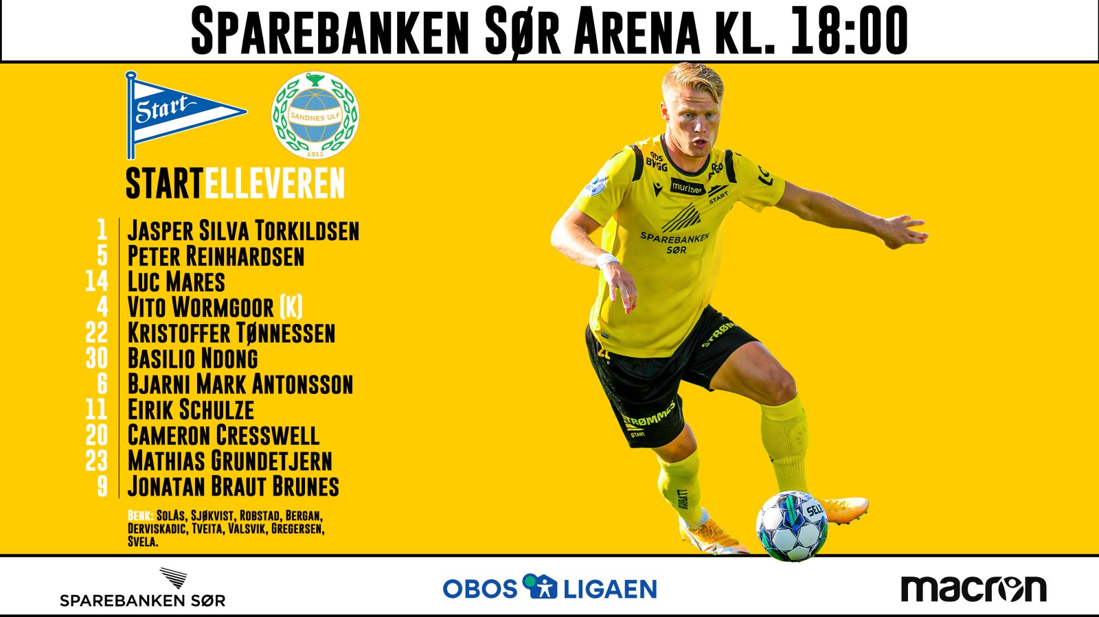 Her er Sindre Tjelmelands utvalgte til kveldens kamp mot Sandnes Ulf. Kampstart er klokken 18:00.