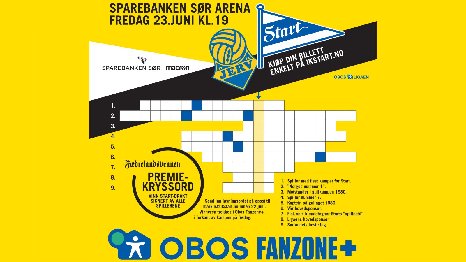 I FanZone+ vil vi også annonsere vinneren av en signert Start-drakt. Alt du trenger for å være med i trekningen er å finne riktig løsningsord vårt kryssord i dagens papirutgave av Fædrelandsvennen. Løsningsord sendes på e-post til markus@ikstart.no.