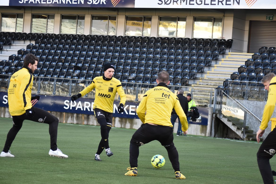 Fredag skal banen innvies i kamp, med lokaloppgjør mot Jerv. Det er også siste treningskamp i Kristiansand før Sandefjord kommer til Sparebanken Sør Arena 29. mars.