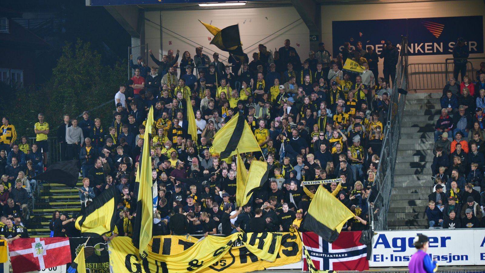 Får vi et nytt bortefeltet som dette på lørdag, når reiser vi til Sandnes for å kjempe om tre poeng? I Sandnes legges det opp til folkefest både for hjemme- og bortefansen. (Foto: Helge N. Olsen).