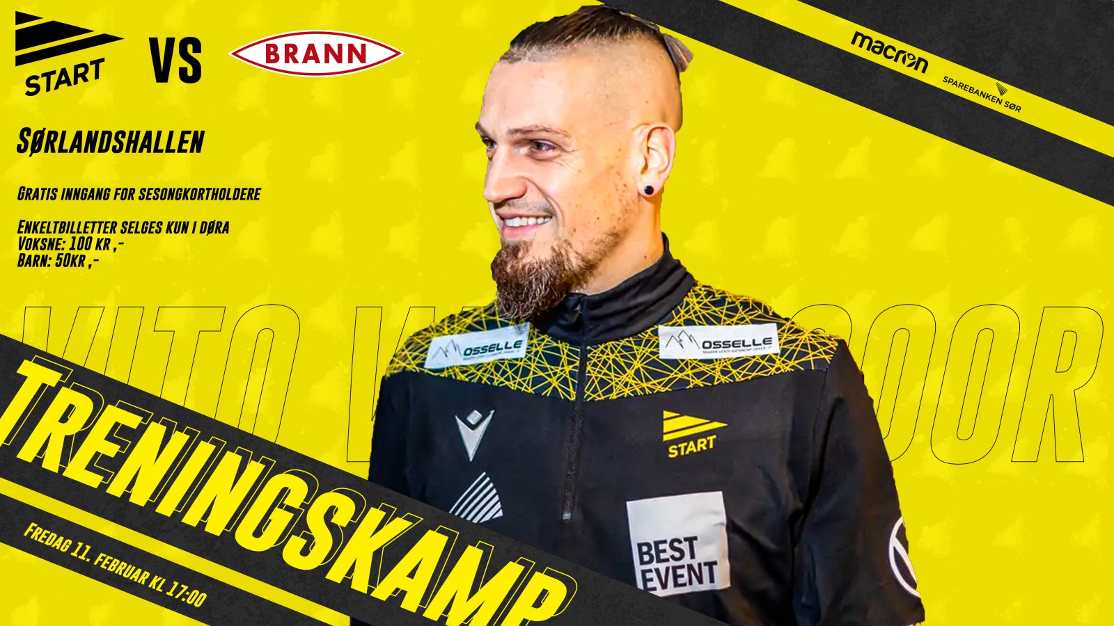 På fredag møter vi Brann til treningskamp. På grunn av lav temperatur vil kampen spilles inne i Sørlandshallen