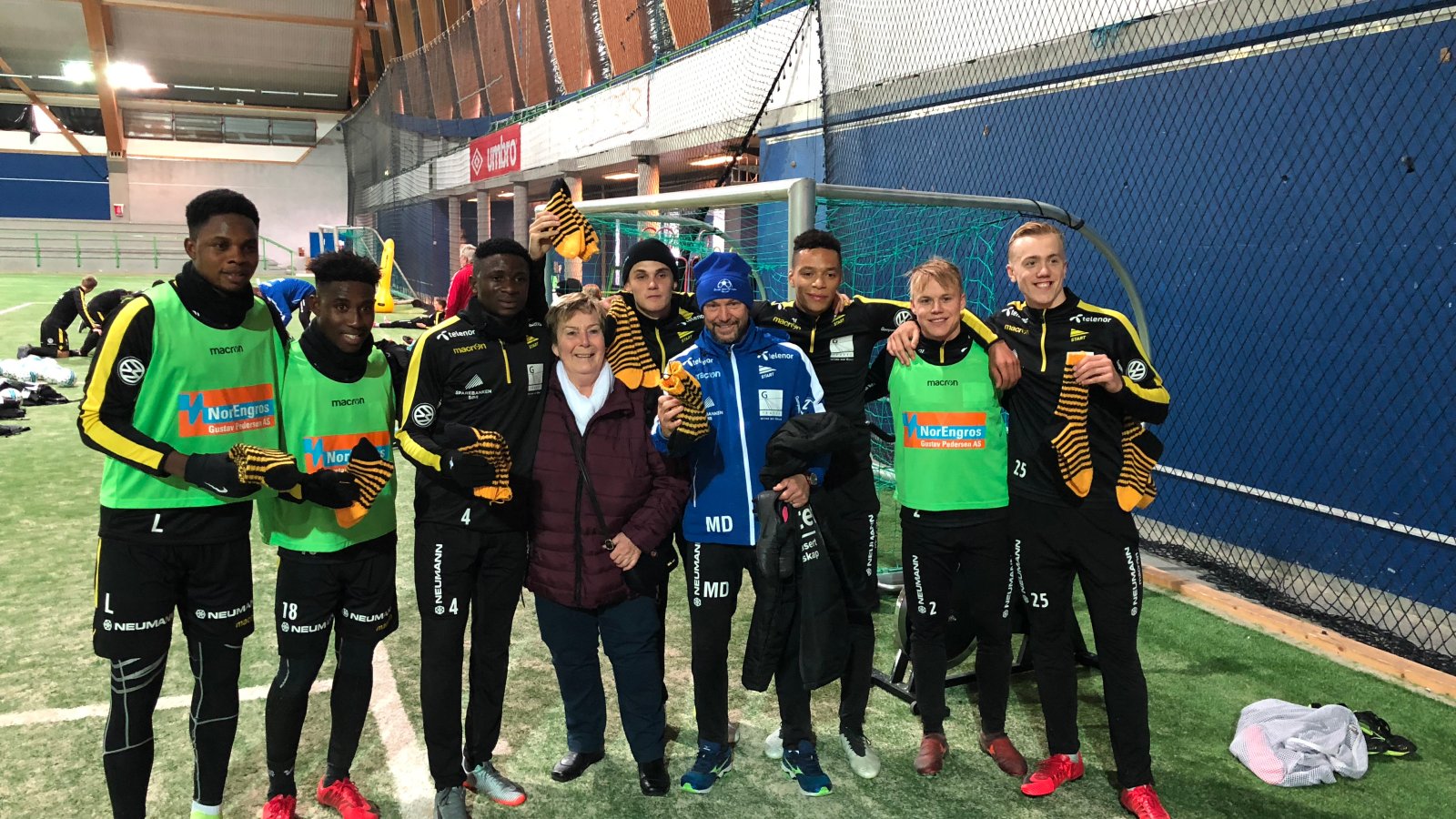 Onsdag stilte Aud Karin "mor" Holberg opp med nystrikkede Start-sokker til både Mark Dempsey og de nye spillerne i stallen. Video