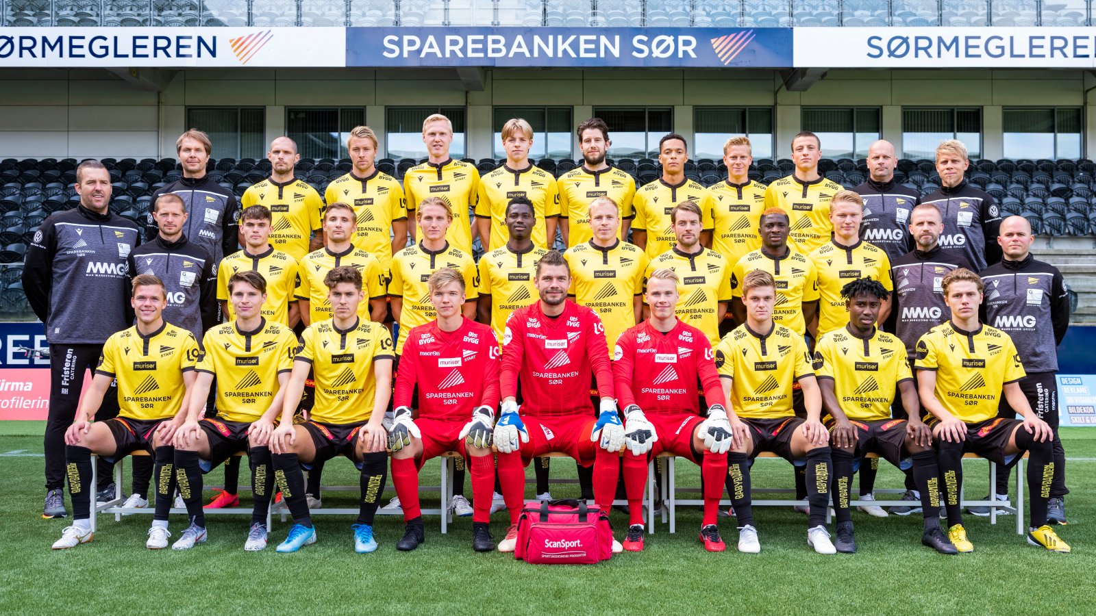 Fra venstre første rad: Eirik Wichne, Kasper Skaanes, Eman Markovic, keeper Fredrik Repstad Hansen, keeper Jonas Deumeland, keeper Amund Wichne, Mathias Bringaker, Isaac Twum og Mikael Birk Ugland. Fra venstre andre rad: Materialforvalter Rune Hægeland, assistentrener Mattias Andersson, Gudmundur Andri Tryggvason, Steffen Lie Skålevik, Erlend Segberg, Adeleke Akinyemi, Martin Ramsland, Espen Børufsen, Afeez Aremu, Kristoffer Tønnessen, trener Joey Hardarson og toppspillerutvikler Andreas Jensen. Bakre rad fra venstre: Kurt Støen, Joackim Jørgensen, Henrik Robstad, Vegard Bergan, Jesper Norman Daland, Henrik Gjesdal. Kevin Kabran, Eirik Schulze, Sander Sjøkvist, keepertrener Frode Birkeland og fysioterapeut Pål Erik Pedersen. Foto: Tor Erik Schrøder / NTB scanpix