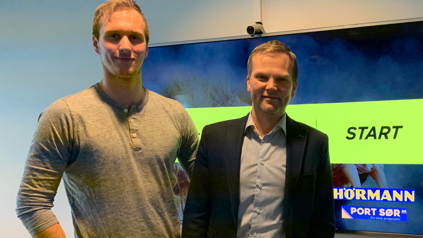 På bildet: Fra venstre: Thomas Tønnesland (daglig leder i Port Sør) og Svein Sørlie (administrerende direktør i Hörmann Norge)