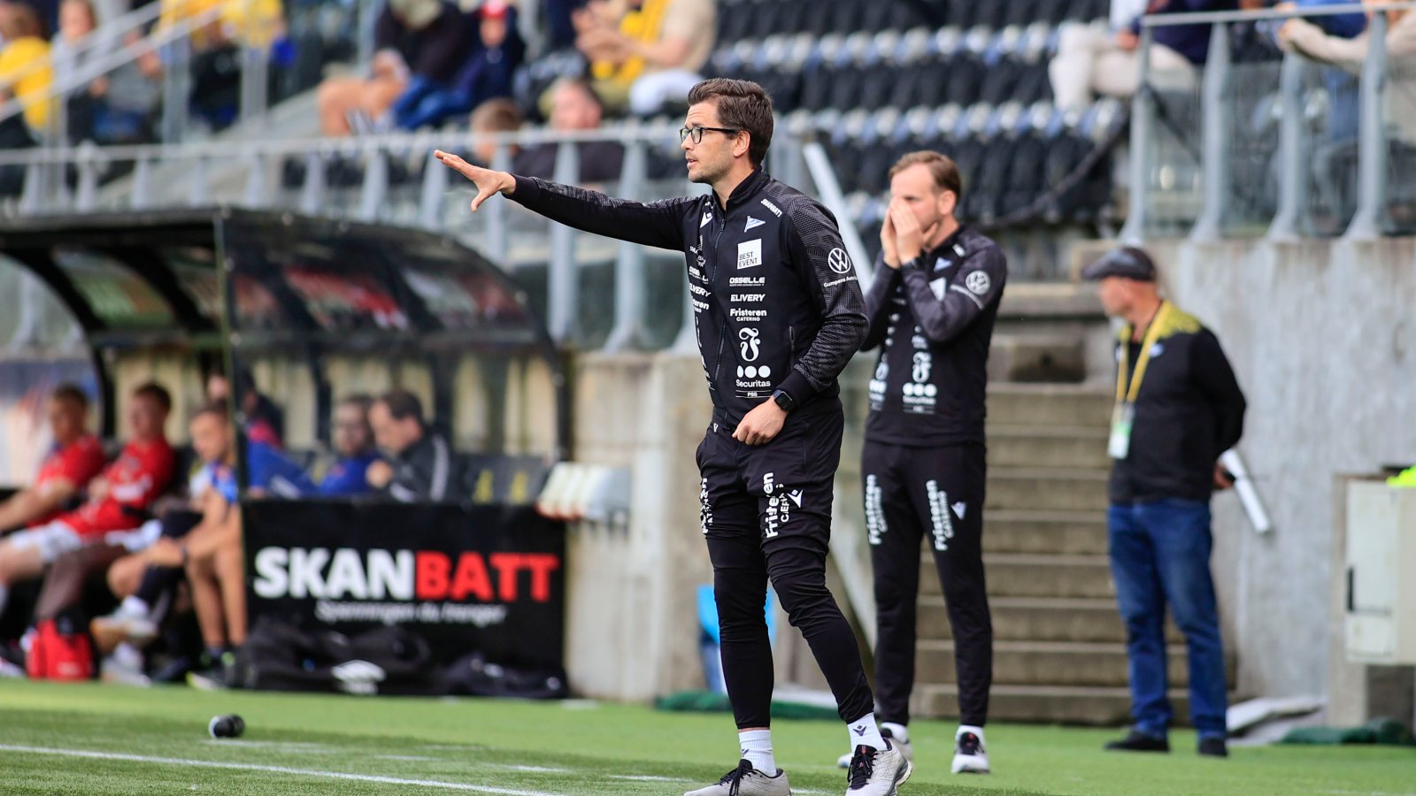 På innbytterbenken sitter Mark Jensen, Rolf Daniel Vikstøl, Henrik Robstad, Kalle Wallius, Vajebah Sakor, Jesper Gregersen og Salim Nkubiri.