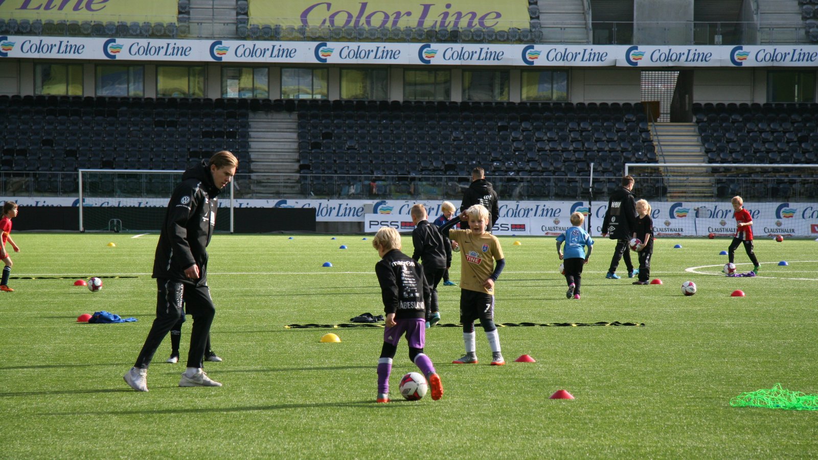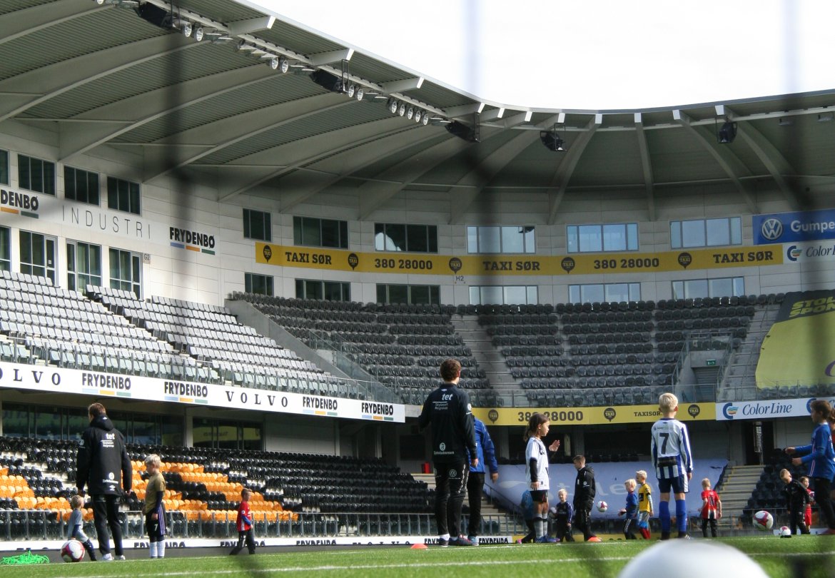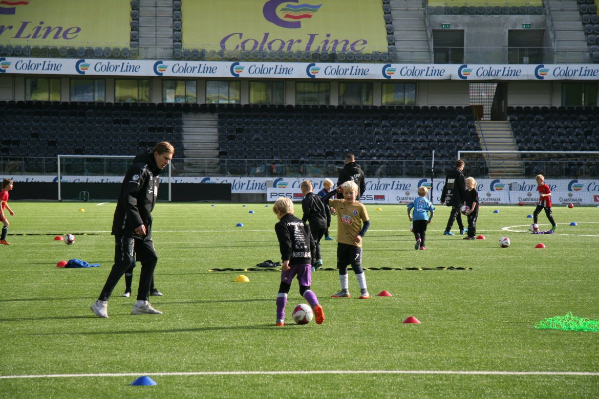 Omlag 100 barn inntok mandag formiddag Sparebanken Sør Arena for å delta på fotballskole.