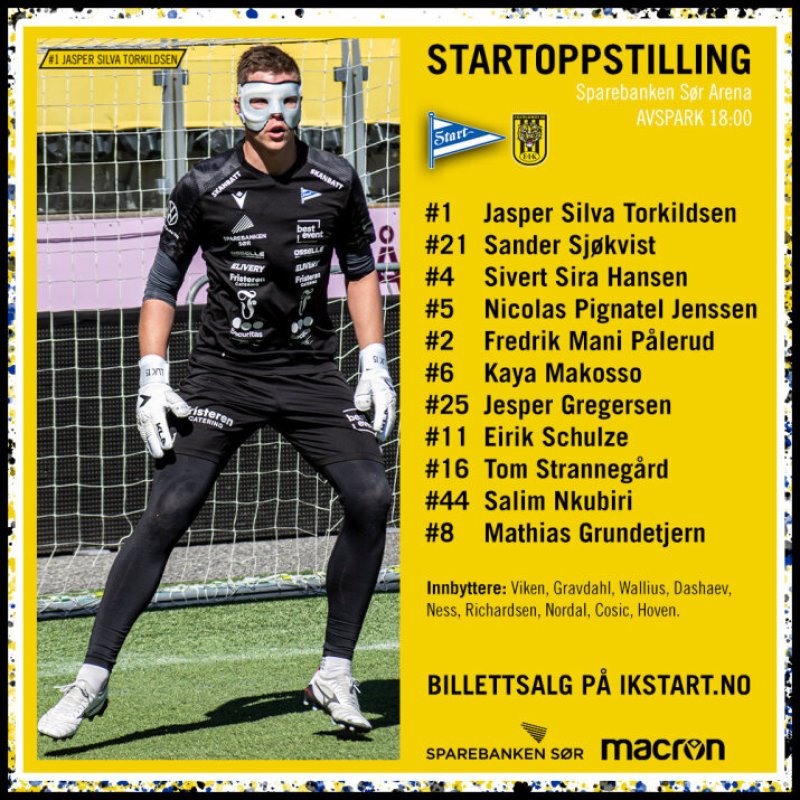 På fotballens nasjonaldag tar vi imot serielederen i OBOS-ligaen, Egersund, på Sparebanken Sør Arena. Azar Karadas og trenerteamet gjør tre endringer fra forrige kamp mot Åsane. Jasper Silva Torkildsen er tilbake i målet etter å ha vært på sidelinjen siden kampen vår mot Mjøndalen 15. april, der han pådro seg en hodeskade etter en tøff duell med en Mjøndalen-spiller. Salim Nkubiri og Mathias Grundetjern får også muligheten fra start, etter å ha startet på benken forrige kamp.