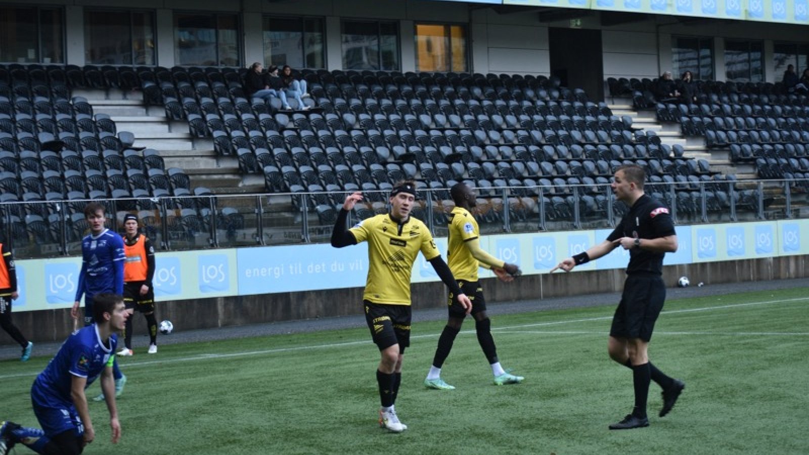 Vindbjart satte ballen i mål like før pause, men dommer hadde allerede blåst for frispark til de gule og svarte, og dermed ebbet omgangen ut i 1-0 til Start.