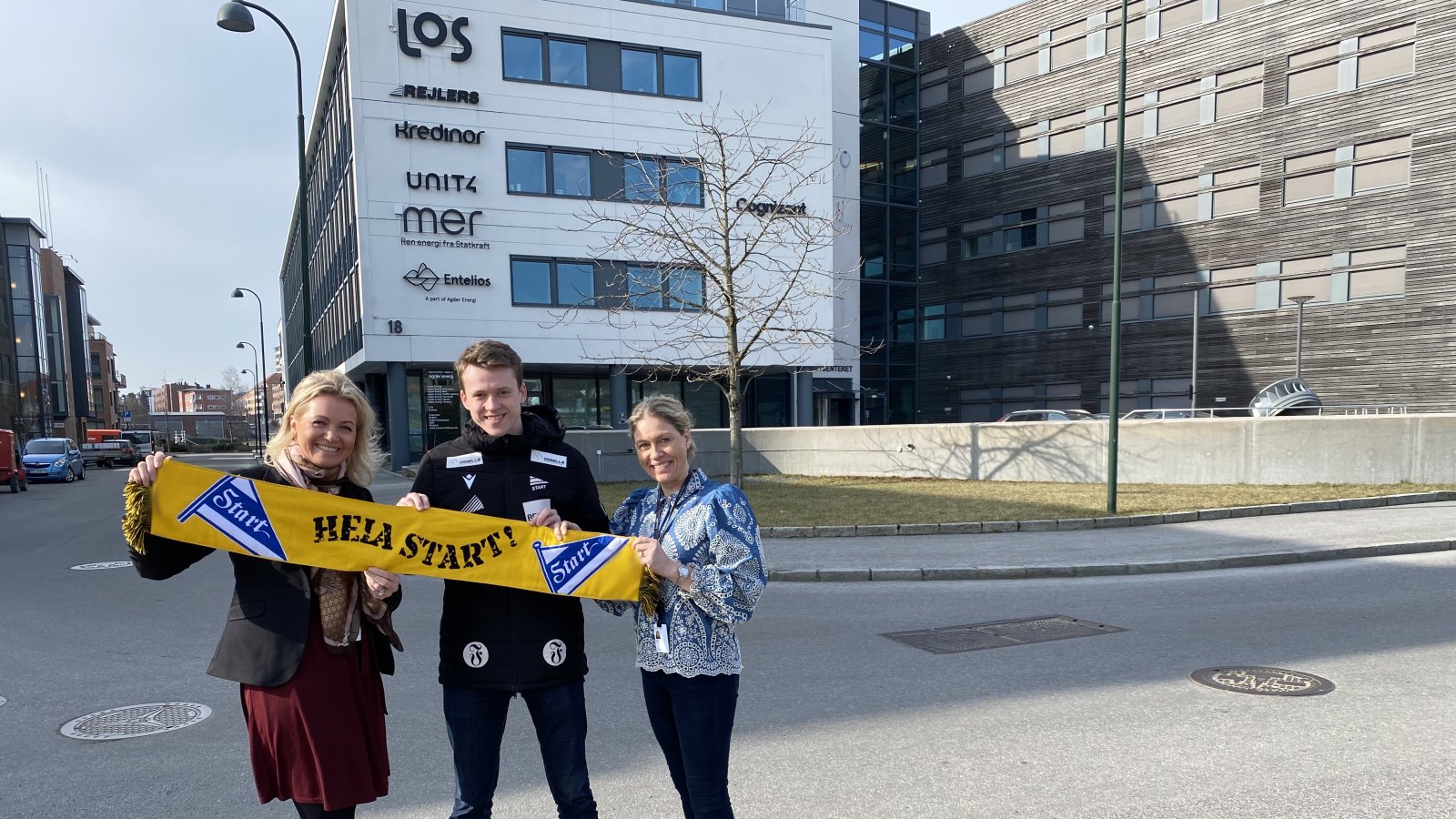 LOS og Entelios donerer et bidrag per Start-mål i årets sesong, og utfordrer flere bedrifter til å bli med. Foto: Egil Olsen. F.v.: Margit Unander (Administrerende direktør i LOS), Markus Slyngenborg Jensen og Kirsten Martinsen (Partneransvarlig i LOS).