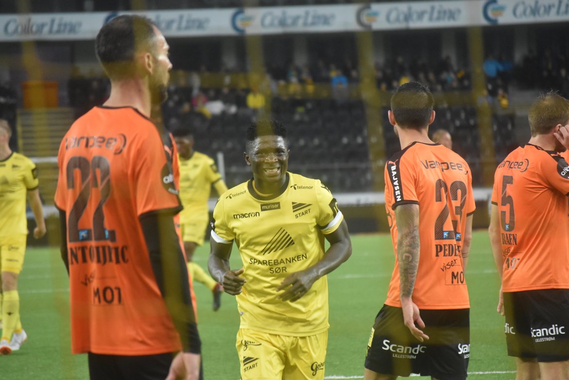 Søndag slo Start Lillestrøm 3-0 etter mål av Adeleke Akinyemi, Kevin Kabran (straffe) i 1. omgang og Mathias Bringaker i 2. omgang.