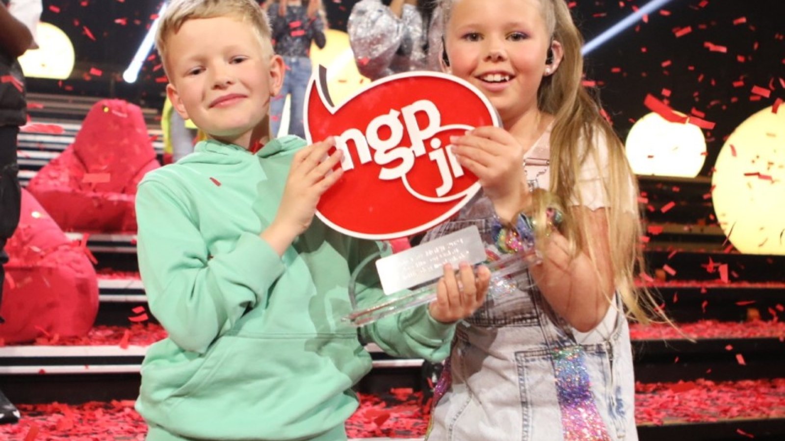 Vinnerne av årets Melodi Grand Prix junior, Josefine og Oskar, skal varme opp for TIX foran 2000 tilskuere på Sparebanken Sør Arena. Foto: Otto Bordvik.