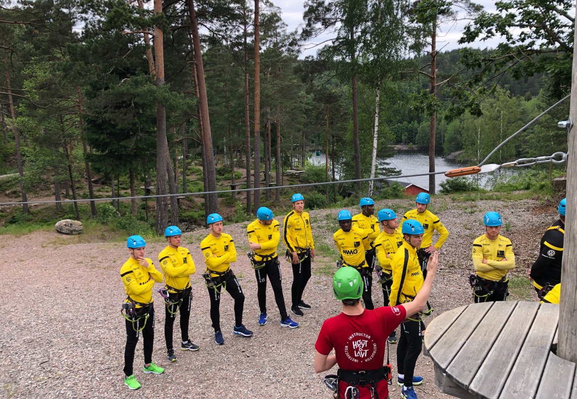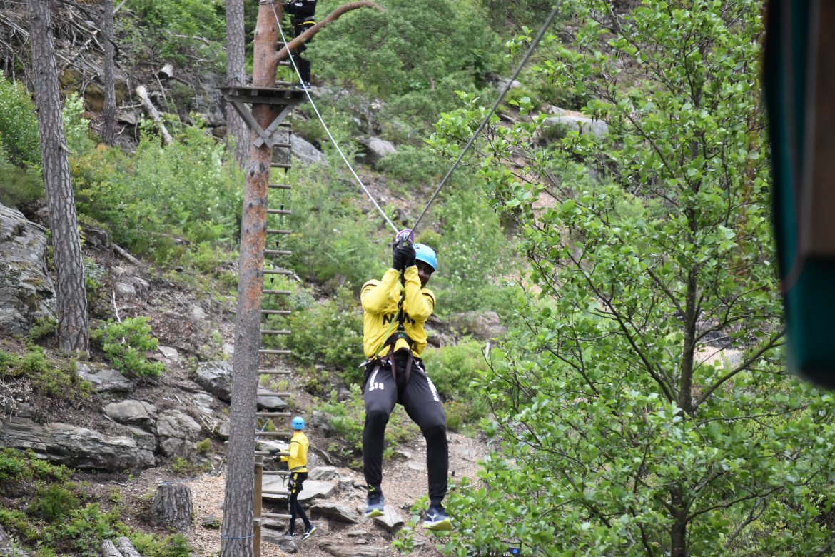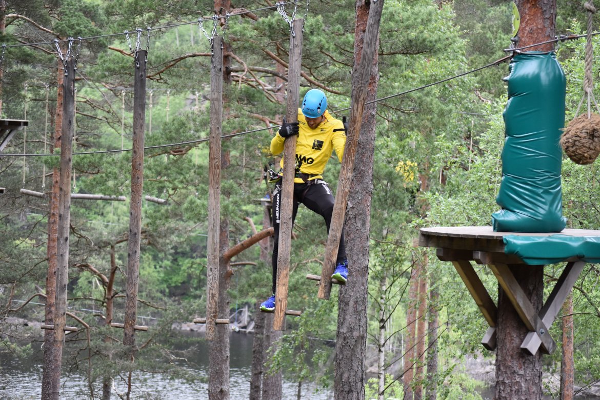 Etter å ha fått et innsyn i hvilke likheter og forskjeller vi har i spillergruppa fikk de endelig på seg klatreutstyret. Noen ga uttrykk for litt frykt i forkant, grunnet høydeskrekk. Men da guttene ble sluppet løs i parken var det lite som tydet på skrekk...
