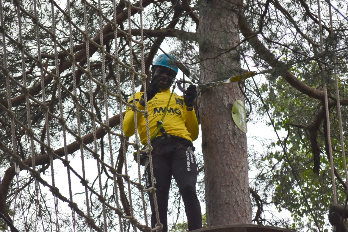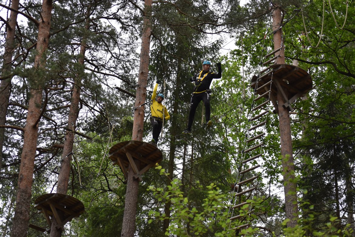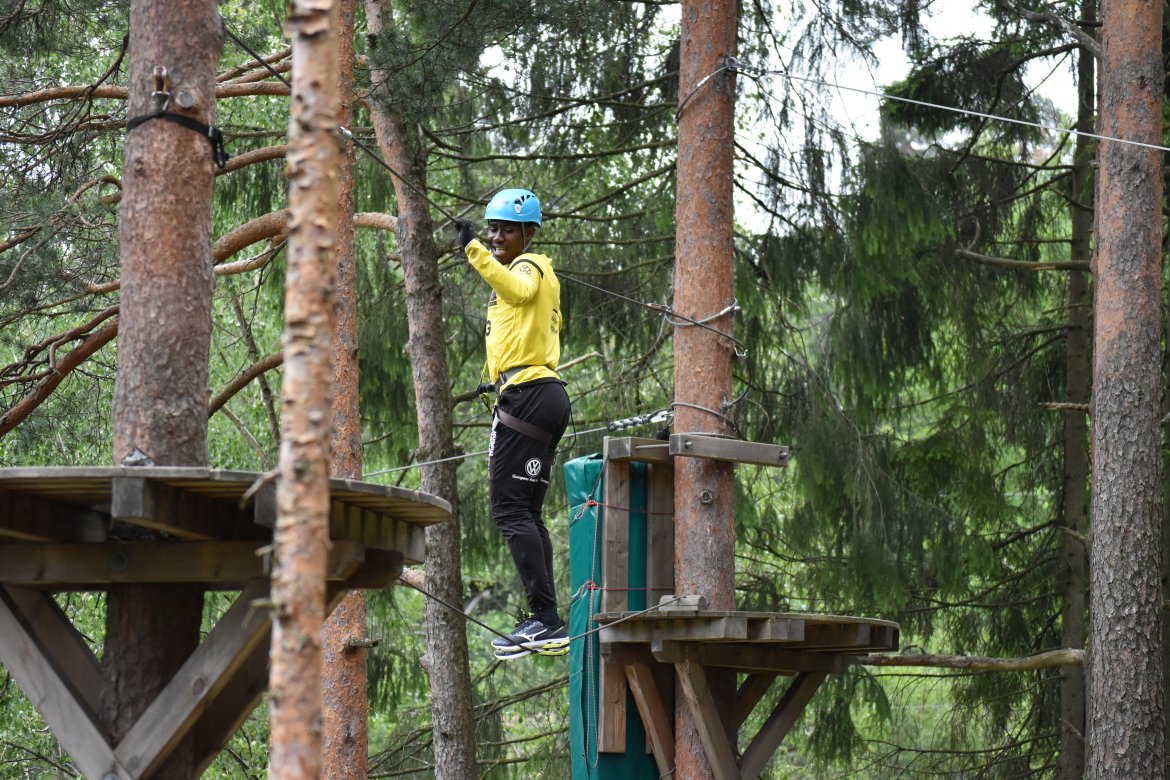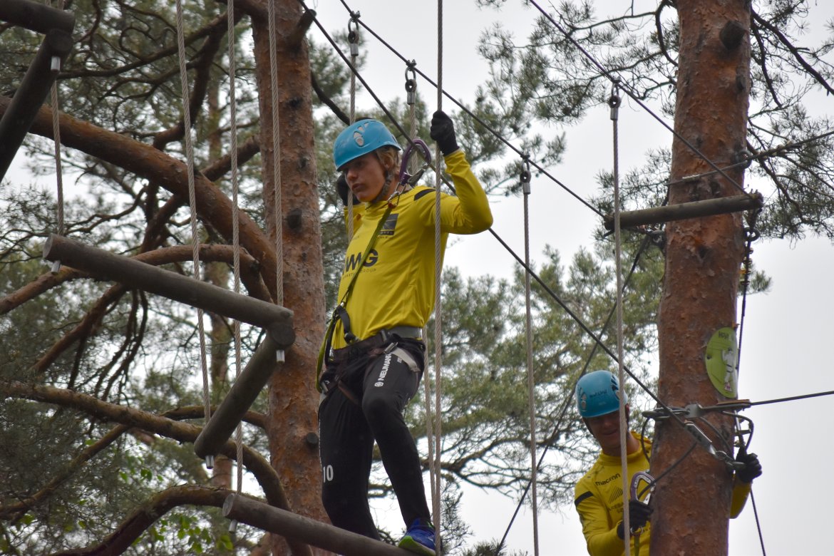 Etter å ha fått et innsyn i hvilke likheter og forskjeller vi har i spillergruppa fikk de endelig på seg klatreutstyret. Noen ga uttrykk for litt frykt i forkant, grunnet høydeskrekk. Men da guttene ble sluppet løs i parken var det lite som tydet på skrekk...