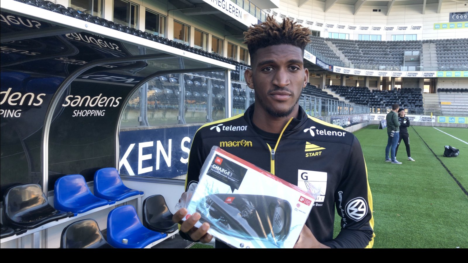 Han snakker om det synlige beviset på at han ble stemt frem som Starts beste spiller i sist hjemmekamp, mot Sarpsborg. Premien er en JBL bluetoothhøytaler levert av Strømmes.