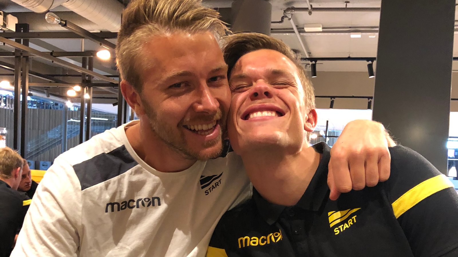 Både Henrik Robstad og Eirik Wichne har bursdag i dag! Med tre poeng på Sotra hadde guttene lov til å feire litt på flyplassen!