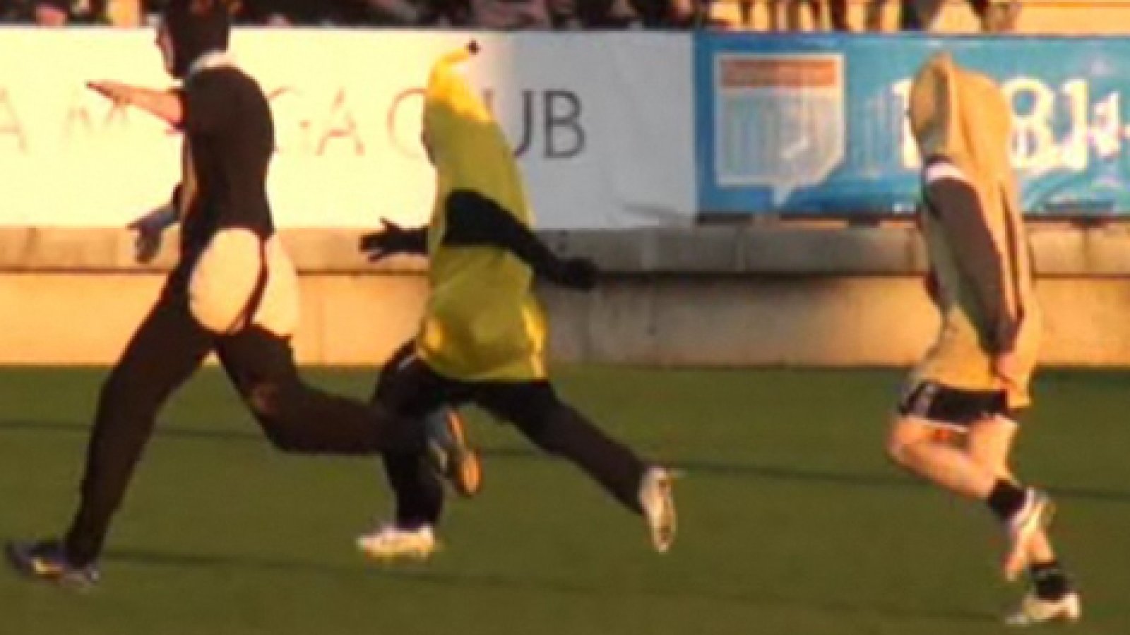 Dommeren tok til fløyta og blåste et par ganger, men ”streakerne” var åpenbart i godt form og forsvant fort fra banen.