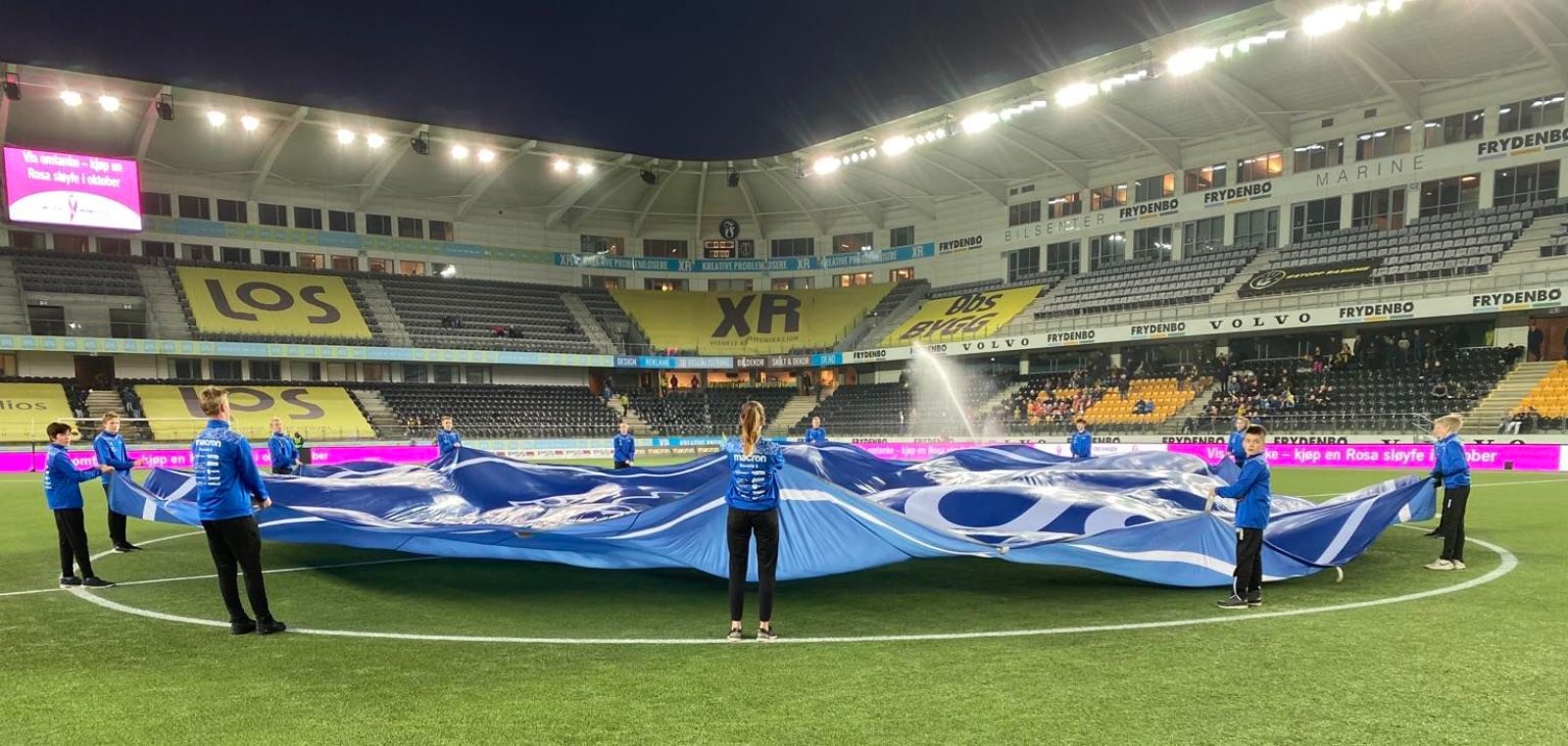 - Får utdelt t-skjorter fra Fædrelandsvennen og posisjoner rundt banen