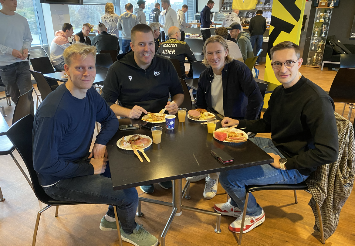 Starts spillere, trener-apparat og administrasjon var i dag samlet til julelunsj i Klubbhuset på Sparebanken Sør Arena. Grunnen til den noe tidlige julelunsjen er at noen spillere snart drar til sine respektive hjemland for å feire høytiden.