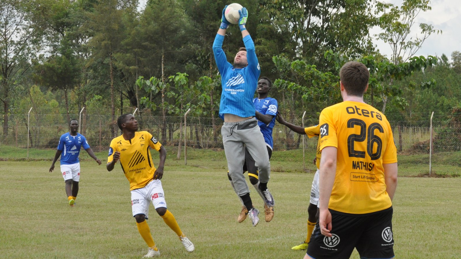 Spilte sin beste kamp noensinne i Uganda – og belønnes med en toer... Strømmestiftelsens mann har en noe uortodoks spillestil som tidvis setter motstanderne ut av spill. Snublefinta kan bli en youtube-hit.