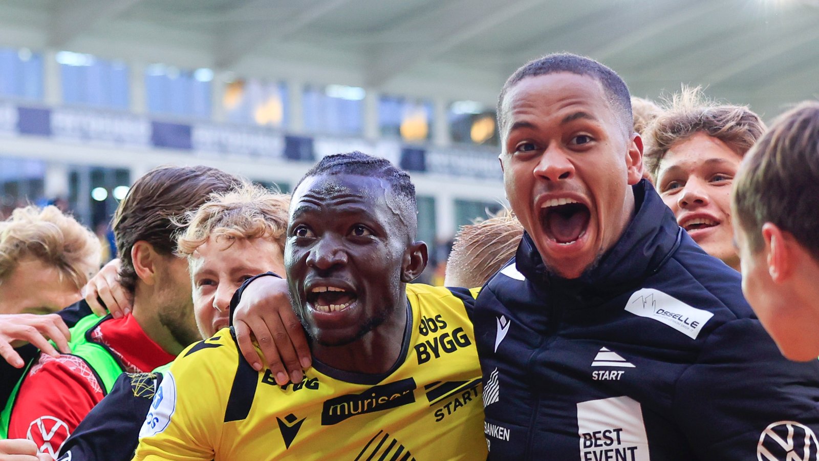 22 min: Utlikning 1-1! Strannegård slår er frispark på bakre, Sanyang header tilbake til Sawo som stuper inn reduseringen.