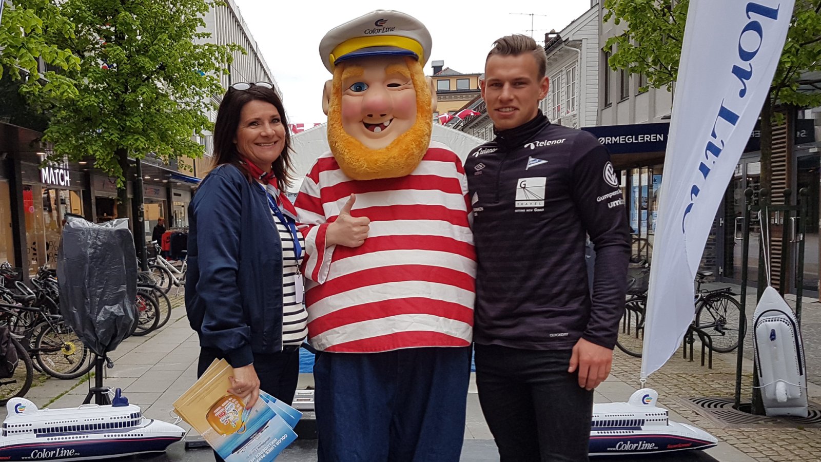 En offensiv salgs- og markedssjef Nina Moland Andersen og Kaptein Kid gleder seg også over at Start-spissen Lasse Sigurdsen også skal spille for Color Line i 2017! Han er nemlig sponset av Color Line.