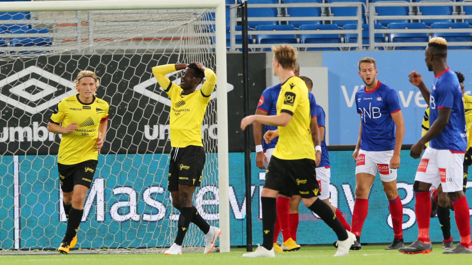 Erlend Segberg og de andre Start-spillerne var skuffet etter at seirsrekken ble brutt mot Vålerenga. FOTO: NTB Scanpix Video