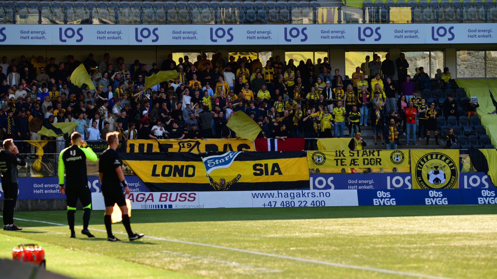 Les Frank Thomassens supporterinnlegg før Start - Jerv her. (Foto: Helge N. Olsen)