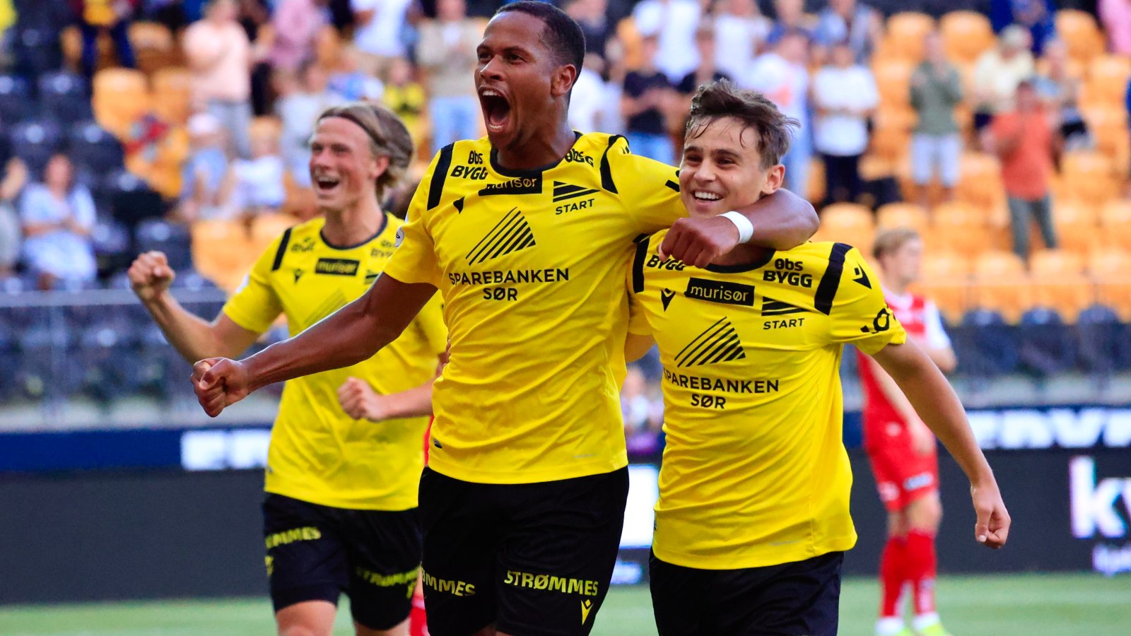 Mathias Grundetjern, Zakaria Sawo og resten av Start-laget knuste Bryne på Sparebanken Sør Arena. Foto: Tor Erik Schrøder Video Bildegalleri