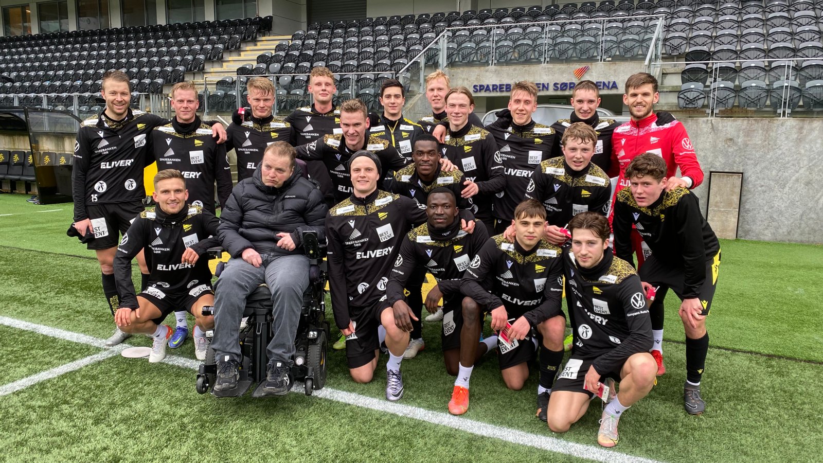 - Dette ble en stor opplevelse for Bjørn. Vi hadde tenkt å være her på stadion i 5-10 minutter i forbindelse med et verkstedbesøk i Kristiansand. Nå fikk vi være på treningen i en time, og hilse på alle Start-spillerne. Vi er så takknemlige, sier Grete Urstad, assistent for Bjørn Larsen. Hun var også med til Kristiansand som sjåfør sammen med sin kollega Karin Larsen.
