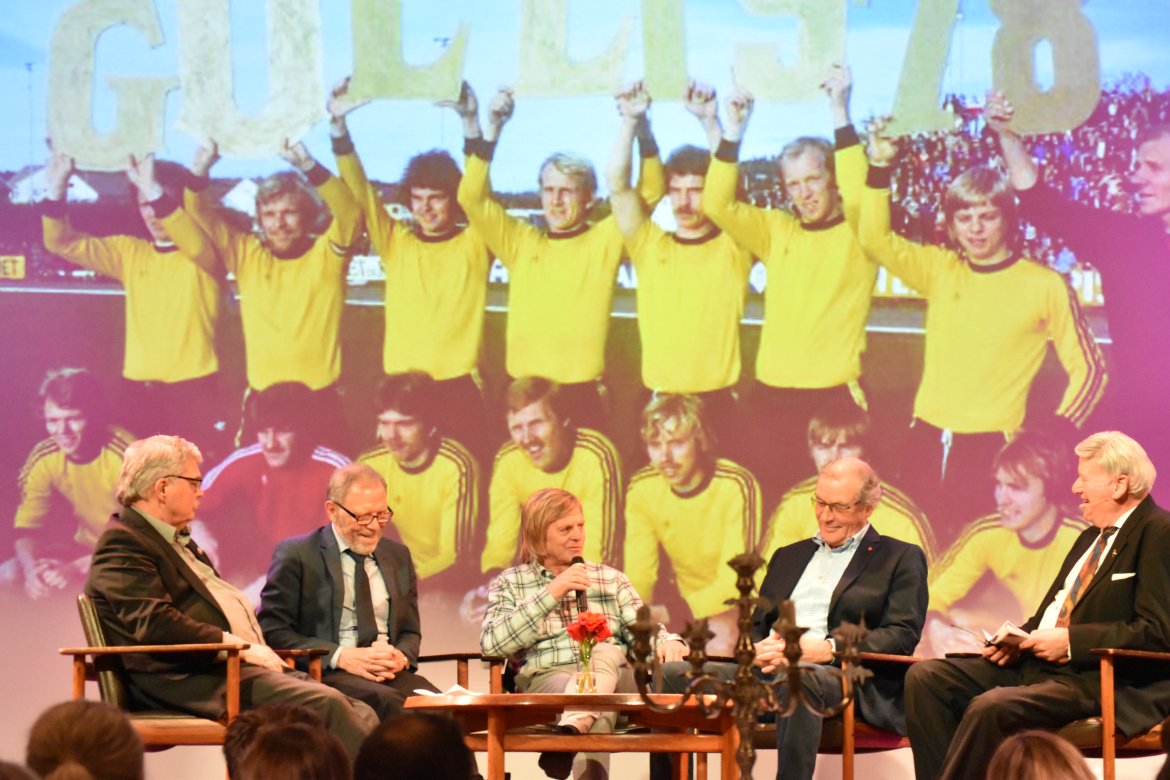 Asbjørn Arntsen fortalte så, med ellevill innlevelse og utallige gullkorn, om den berømte Gullkassetten fra 1980, laget for å feire Starts seriegull. Historiene om hvordan Karsten fikk både Wenche Myhre og Bjørge Lillelien til å stille opp fikk publikum til å trekke godt på smilebåndet.