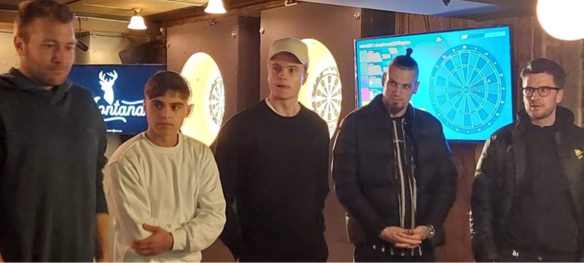 Tigerberget satte veldig pris på at Henrik Robstad (t.v.), Emir Derviskadic, Jonatan Braut Brunes, Vito Vormgoor og Sindre Tjelmeland stakk innom supporterklubbens kick off på Montana Grill & Pub. Bildegalleri