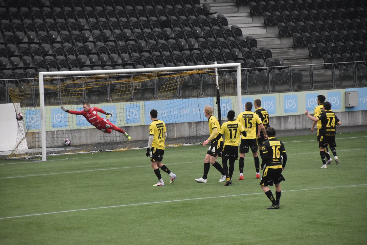 Det gule laget startet best og tok også ledelsen etter at Andri skaffet straffespark. Det satte Marković sikkert i mål via tverrligger og ned.