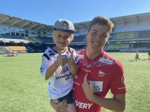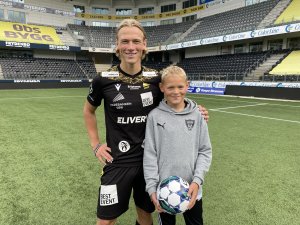 Jasper Silva Torkildsen (18) har mange fans. Den største og yngste er kanskje Kasper Langenes fra Søgne. Søndag kommer 5-åringen for å se Jasper i aksjon for Start mot Stjørdals-Blink. (Foto: Egil Olsen).
