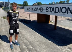 Her, på kunstgressbanen ved Kristiansand stadion, slet Jesper Gregersen ut sine første par fotballsko, som 5-åring. Sine sju første skoleår gikk han på Wilds Minne skole, i bakgrunnen. PS! Det skal nå legges nytt dekke på den vel 20 år gamle kunstgressbanen. Ny skole og flerbrukshall er også estimert å stå ferdig til skolestart i 2024. (Foto: Egil Olsen).