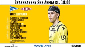 Klokken 18:00 er det kampstart mot Brann. Her er de 11 som Sindre Tjelmeland og trenerteamet har valgt til å starte dagens kamp.