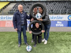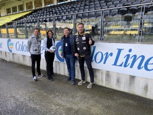 Starts salgssjef, Kristian Westgaard (t.v.) og klubbdirektør Terje Marcussen (t.h.) gleder seg stort over at Color Line, her representert ved Nina Moland Andersen (Salgs- og markedssjef) og Lars R. Hannestad (Key Account Manager), har forlenget sponsoravtalen med klubben. (Foto: Egil Olsen).