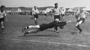 Storscoreren Leif Grundetjern var en av de aller beste Start-spillerne på 50- og 60-tallet. Vi tok et lite dykk i historiebøkene. Foto: Leif Grundetjern og Start vinner 2-0 over Os og sikrer opprykket til hovedserien i 1959. Arkivfoto Fædrelandsvennen.