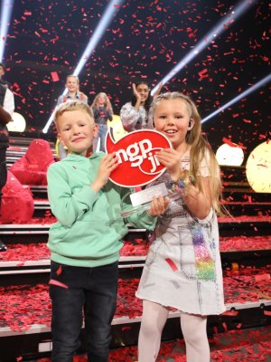 Vinnerne av årets Melodi Grand Prix junior, Josefine og Oskar, skal varme opp for TIX foran 2000 tilskuere på Sparebanken Sør Arena. Foto: Otto Bordvik.