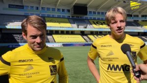 Målscorerne Eirik Schulze og Kristoffer Tønnessen var strålende fornøyd etter kampen.