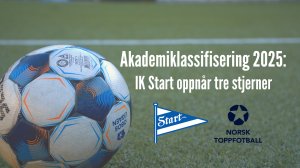 IK Start har etter vurdering gjort av Norsk Toppfotball oppnådd tre av fem stjerner på akademiklassifiseringen 2025.