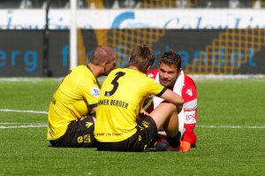 Det var en fryktelig skuffet spillergruppe som møtte media etter 0-3 mot Notodden. Foto: NTB scanpix