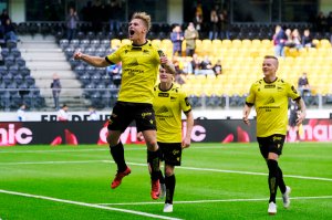 Kasper Skaanes og de andre spillerne sprudler etter den gode opplevelsen mot Strømmen søndag. Nå ser han frem til en tur til Vestlandet. Foto: Ole Endre Kallhovd