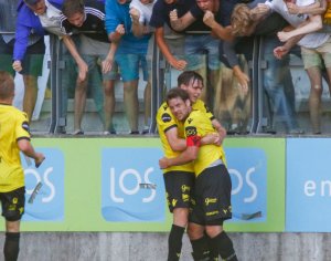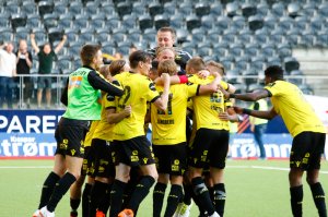 Det ble en lang kveld, men da Kevin Kabran satte inn den avgjørende straffen brøt jubelen løs! Vi hang oss på med kamera. Foto: NTB scanpix