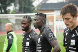 Alagie Sanyang (i midten) har blitt utnevnt til en del av IK Starts kapteinsteam.