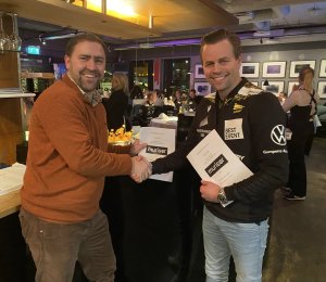 Adept Bemanning & Rekruttering, her representert med Christian Haave (t.v.) og Per Erik Johannessen (t.h.) på hver sin side av Starts Kristian Westgaard.